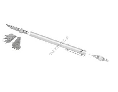 Wielofunkcyjny, dwustronny nóż wykonany z wysokiej jakości materiałów, całość składa się z rozbieralnych, wymiennych modułów, korpus zrobiony z aluminium nadaje narzędziu niesamowity design. Z jednej strony posiada nożyk do precyzyjnego cięcia, a z drugiej głowicę zakończoną igłą do usuwania pęcherzyków powietrza. Takie rozwiązanie 2 w 1 to wygodna forma, która cieszy się coraz większą popularnością u profesjonalistów. W skład zestawu wraz z nożykiem wchodzi dodatkowo 5 szt ostrzy o kącie nachylenia 30° i 5 szt o kącie nachylenia 45°.
